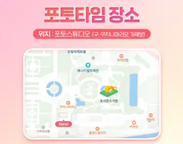 - 포토타임 장소: 포토스튜디오(구. 쿠치나마리오 가제보)